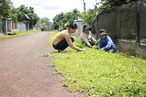 | Phong trào chăm sóc đường hoa của phụ nữ xã Phú Xuân thu hút nhiều hội viên tham gia. |