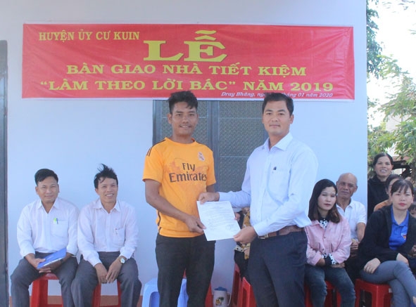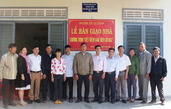 | Đại diện lãnh đạo huyện Cư Kuin bàn giao nhà "Tiết kiệm làm theo lời Bác" cho người có hoàn cảnh khó khăn trên địa bàn huyện. |