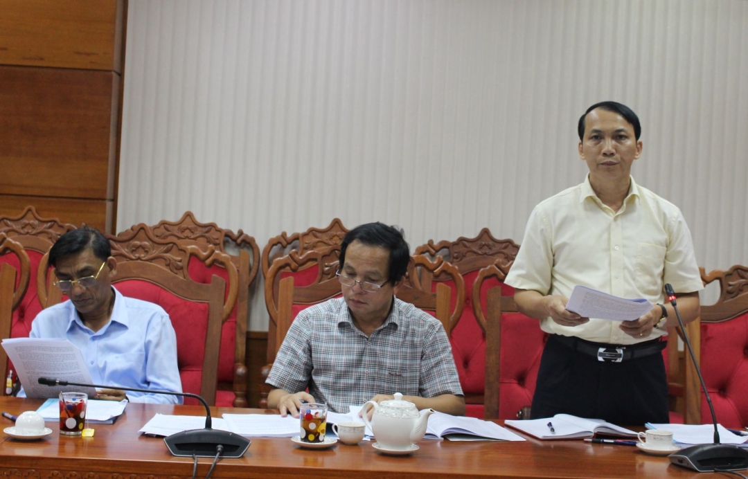 | Bí thư Huyện ủy Cư M’gar Nguyễn Đình Viên báo cáo tại cuộc họp. |