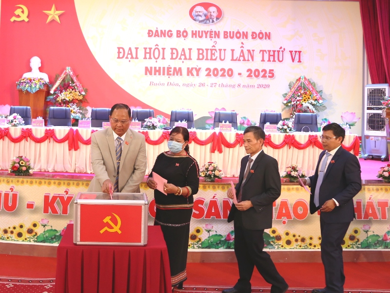 Đại hội đã bầu Ban Chấp hành Đảng bộ huyện Buôn Đôn khóa VI gồm 37 đồng chí; bầu 11 đại biểu chính thức và 1 đại biểu dự khuyết dự Đại hội đại biểu Đảng bộ tỉnh lần thứ XVII, nhiệm kỳ 2020 - 2025. Tại phiên họp đầu tiên của Ban Chấp hành khóa mới đã bầu Ban Thường vụ Huyện ủy gồm 11 đồng chí; đồng chí Ya Toan Ênuôl tiếp tục được tín nhiệm bầu giữ chức Bí thư Huyện ủy nhiệm kỳ 2020 – 2025.