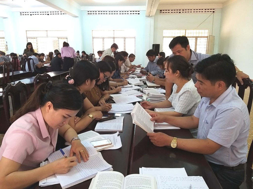| Học viên lớp Trung cấp lý luận Chính trị - Hành chính K29 trong giờ nghiên cứu thảo luận. |