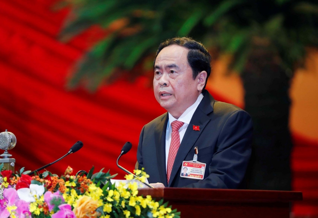 | Bí thư Trung ương Đảng, Chủ tịch Ủy ban Trung ương Mặt trận Tổ quốc Việt Nam Trần Thanh Mẫn trình bày tham luận tại Đại hội. |
