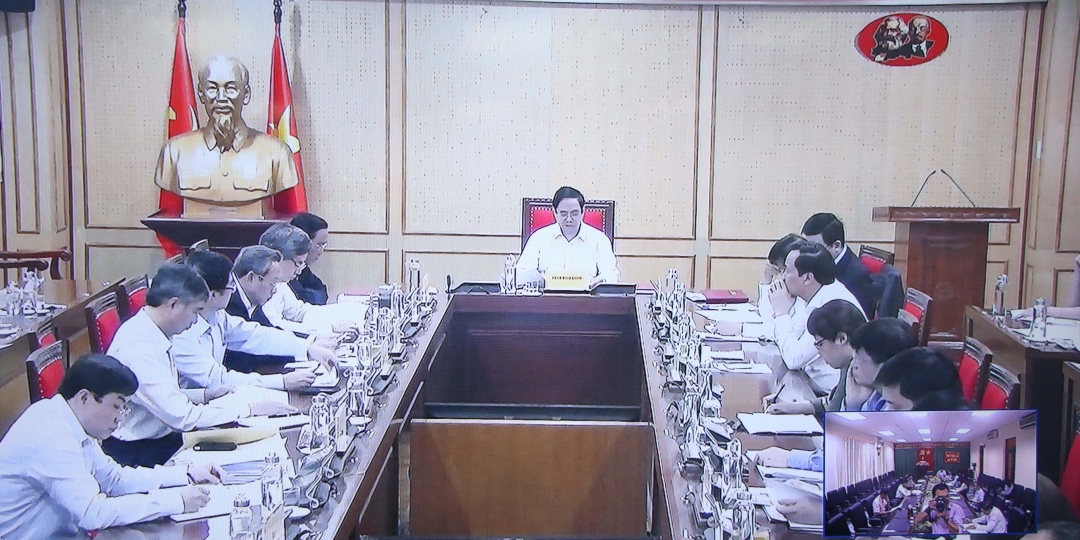 | Hội nghị trực tuyến tại điểm cầu Ban Tổ chức Trung ương (Ảnh chụp qua màn hình) |