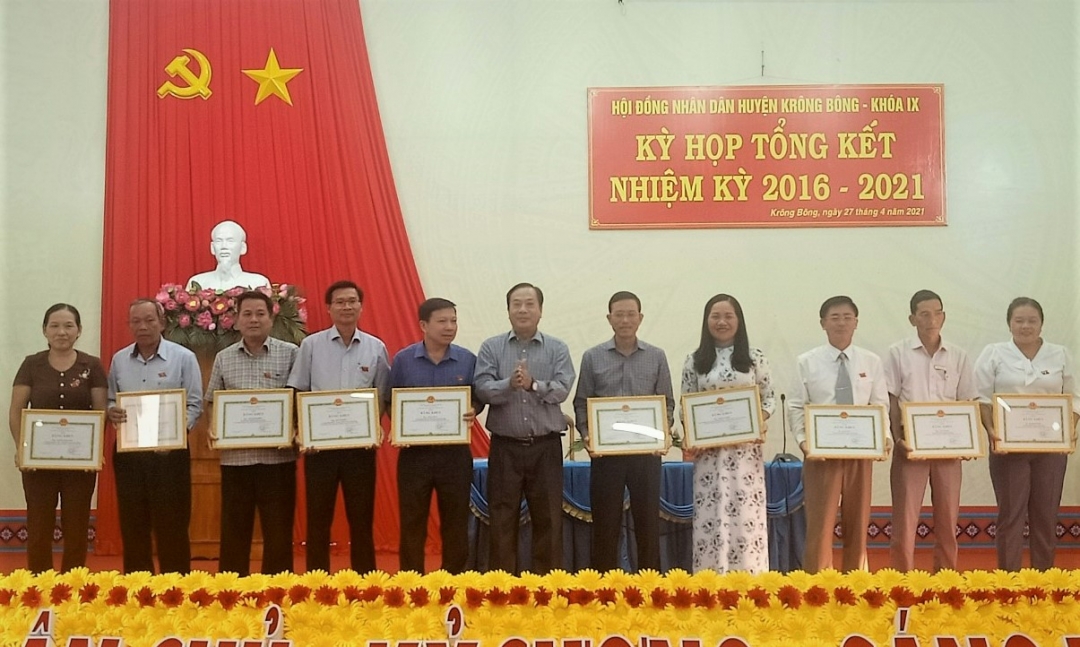 Nhân dịp này, Chủ tịch UBND tỉnh tặng Bằng khen cho 6 tập thể và 10 cá nhân; UBND huyện Krông Bông tặng Giấy khen cho 7 tập thể và 29 cá nhân có thành tích xuất sắc trong hoạt động HĐND huyện nhiệm kỳ 2016 - 2021.