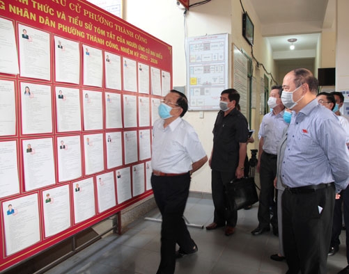 Đoàn kiểm tra cũng đã kiểm tra công tác phòng, chống dịch COVID-19, việc khử khuẩn các phương tiện vào đơn vị, bố trí các điểm đo thân nhiệt, sát khuẩn, bố trí các vách ngăn và giãn cách khi các cử tri đi bỏ phiếu.