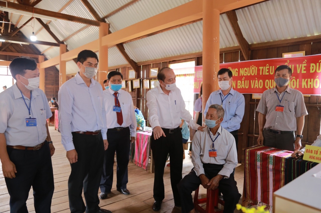 Đoàn công tác của UBND tỉnh, HĐND tỉnh kiểm tra công tác tổ chức bầu cử buôn Riêng A, xã Ea Knuếc