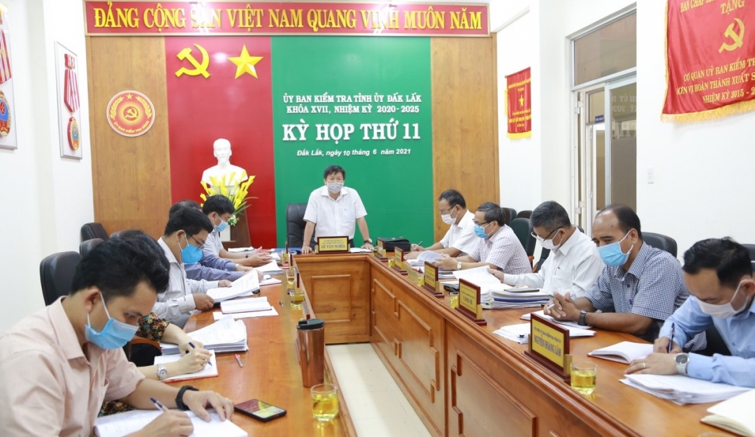 | Cán bộ, viên chức Ủy ban MTTQ Việt Nam tỉnh Đắk Lắk ủng hộ kinh phí phòng, chống COVID-19. Ảnh: Đăng Triều |