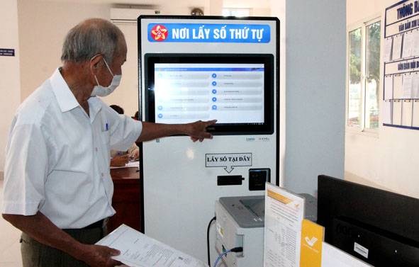 | Người dân thực hiện bốc số tự động khi đến giải quyết thủ tục hành chính tại Trung tâm hành chính công tỉnh. |