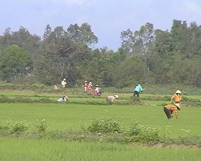 Trên cánh đồng thôn 3, đông đảo người dân tập trung phun thuốc diệt chuột để bảo vệ lúa. Nhiều nông dân cho biết, hiện nay một số diện tích cây trồng bị chuột phá hoại nên bà con phải mất nhiều thời gian để tỉa dặm. Mặc dù không khí tết vẫn còn, nhưng mọi người vẫn đi thăm đồng để theo dõi sinh trưởng của lúa để kịp thời xử lý sâu bệnh và sự phá hại cây trồng của loài chuột.