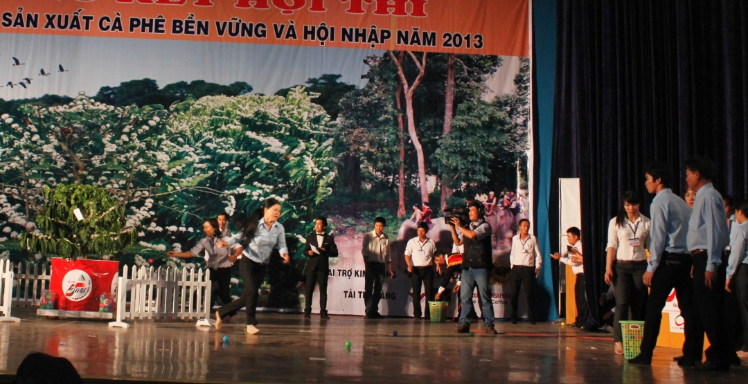 Vòng chung kết diễn ra sôi nổi với 5 phần thi: Nhà nông tự giới thiệu; kiến thức tổng hợp; giành quyền trả lời; nhận diện hoạt động sản xuất cà phê; bón phân cân đối cho cà phê.