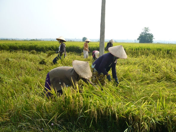 | Người dân tại xã Ea Lê thu hoạch lúa |