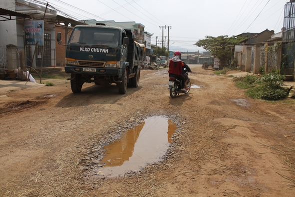 Tình trạng xe tải lưu thông quá nhiều trên tuyến đường này không những phá hỏng kết cấu mặt đường mà còn ảnh hưởng nghiêm trọng đến đời sống dân sinh. Chứng kiến thực tế cho thấy, phần lớn mặt đường bị biến dạng hoàn toàn, ổ trâu, ổ gà xuất hiện chi chít, đất, cát, gạch rơi vãi đầy đường. Trong khi mặt đường nhỏ, chỗ lồi, chỗ lõm, phương tiện trọng tải lớn lưu thông nhiều, chiếm hết lối đi của người tham gia giao thông, khiến nguy cơ tai nạn luôn rình rập người đi đường. Chị Giang (người dân xã Ea Yiêng) than vãn, mỗi lần có việc ra huyện, đi trên đoạn đường này chị đều cảm thấy bất an, mùa mưa xuất hiện nhiều vũng nước không biết chỗ nào mà tránh, còn mùa nắng thì bụi bay mù mịt, xe tải chạy liên tục chiếm hết lòng đường, che khuất tầm nhìn. Chưa kể, đến vụ thu hoạch nông sản của bà con, các loại phương tiện lưu thông qua đường này càng trở nên dày đặc, rối rắm hơn.