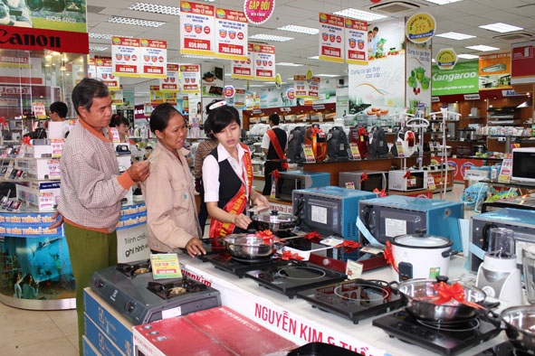 | Khách chọn mua hàng điện tử tại một trung tâm mua sắm trên đường Nguyễn Tất Thành, TP. Buôn Ma Thuột. |