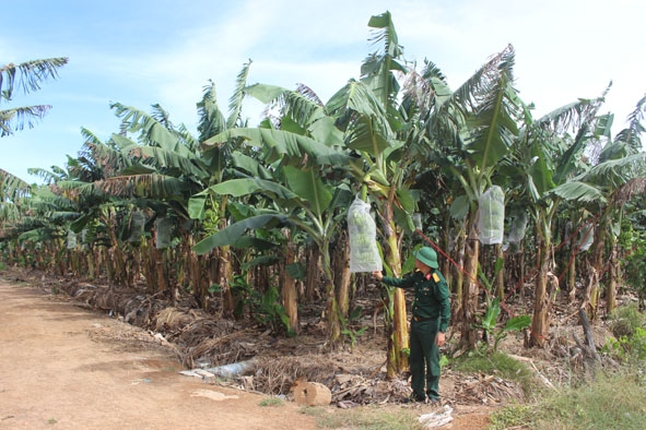 Thiếu tá Đỗ Văn Nhuần, Phó Đoàn trưởng Đoàn Kinh tế quốc phòng 737 chia sẻ, những năm qua, đơn vị đã liên kết với các công ty, doanh nghiệp triển khai các dự án nuôi, trồng khảo nghiệm phát triển nông nghiệp trên vùng biên có khí hậu khắc nghiệt. Cụ thể: triển khai dự án trồng khảo nghiệm cây khoai lang, khoai mì làm nguyên liệu sản xuất thức ăn chăn nuôi và cồn công nghiệp với đối tác là Công ty TNHH TMDV Phương Nam Xanh; dự án phát triển trang trại tổng hợp (chanh dây, khoai mì, bí đỏ, đậu xanh…) với đối tác là Công ty TNHH TMDV Thượng Phú; dự án trồng cây cao lương với đối tác là Công ty Công nghiệp điện hơi Tín Thành; dự án trồng chuối xuất khẩu, cây có múi và trang trại chăn nuôi với đối tác Công ty Cổ phần Phát triển nông nghiệp công nghệ cao Toàn Thắng… Nhờ áp dụng khoa học kỹ thuật chăm sóc hiện đại nên đa phần các loại cây trồng đều sinh trưởng, phát triển tốt, trong đó có những cây trồng đã cho năng suất, chất lượng cao.