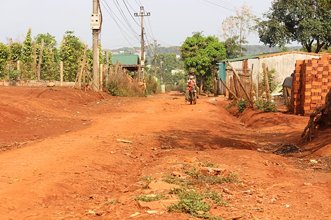 | Đường liên buôn Tùng Kuh hiện đang nằm trong lộ trình xây lại đường NTM của xã. |