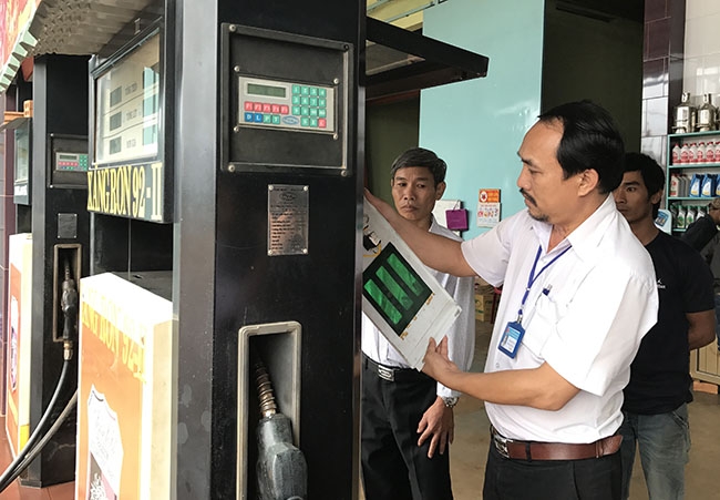 | Cán bộ Chi cục Thuế huyện Cư M’gar kiểm tra một doanh nghiệp kinh doanh xăng dầu trên địa bàn. |