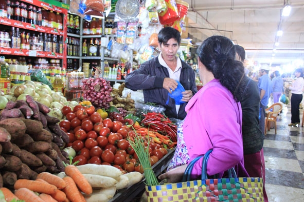 | Người tiêu dùng mua hàng ở chợ Trung tâm Buôn Ma Thuột. |