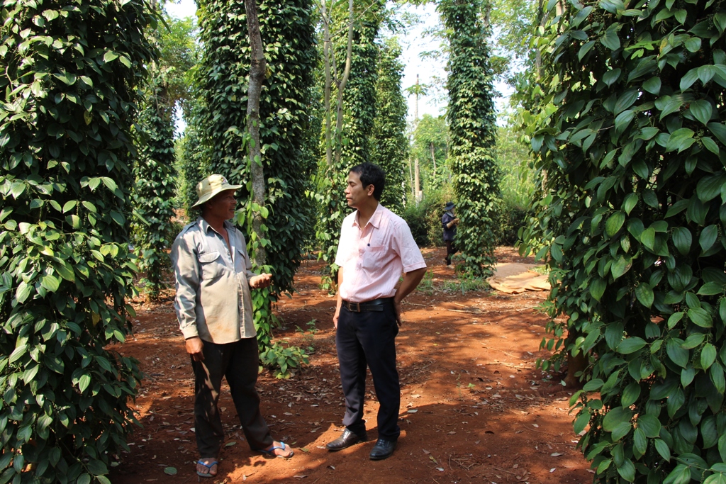 | Sản xuất hồ tiêu ở xã Ea Ning, huyện Cư Kuin. |