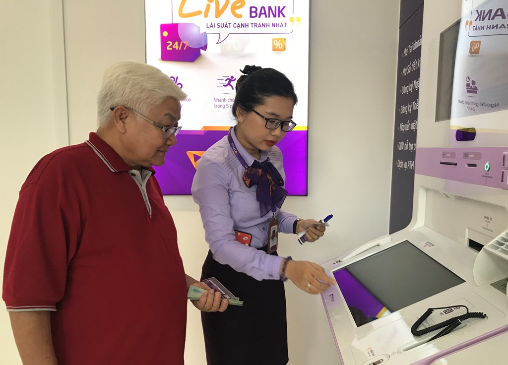 | Nhân viên Ngân hàng TMCP Tiên Phong Chi nhánh Đắk Lắk hướng dẫn khách hàng sử dụng dịch vụ thẻ của đơn vị |