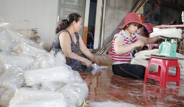 | Nghề làm miến, bún, phở khô của gia đình anh Vũ Quốc Phong (tổ dân phố 1) đã tạo việc làm cho nhiều lao động địa phương. |