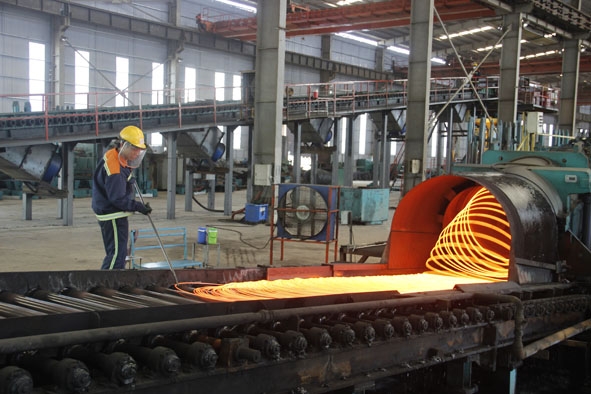 | Một công đoạn sản xuất thép tại Công ty Cổ phần Thép Đông Nam Á. |