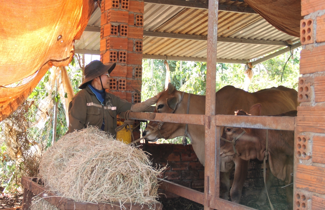 | Một mô hình nuôi bò từ nguồn vốn vay Ngân hàng Chính sách xã hội ở xã Tân Lập (huyện Krông Búk). |