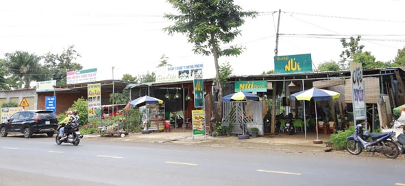 | Nhiều hàng quán dọc Quốc lộ 27 đoạn qua xã Ea Tiêu, huyện Cư Kuin xây dựng trên đất thuộc quản lý của các công ty cà phê. |