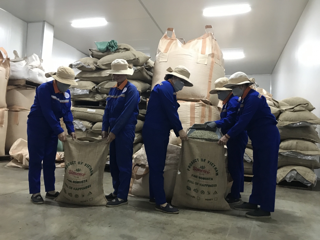 | Kiểm tra cà phê đã qua chế biến xuất khẩu tại Công ty Cổ phần Đầu tư và Phát triển An Thái. |