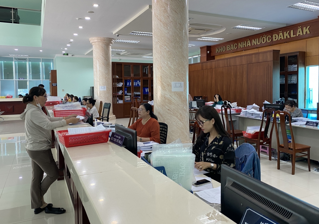 Công tác cải cách TTHC tại hệ thống KBNN được thực hiện đồng bộ với cơ chế một cửa, một cửa liên thông. 100% TTHC được công bố, niêm yết công khai tại trụ sở hệ thống các KBNN trên địa bàn tỉnh; thực hiện nghiêm túc việc cập nhật, công khai đầy đủ các quy trình nghiệp vụ thu NSNN, chi NSNN trong lĩnh vực đầu tư xây dựng cơ bản; thường xuyên tuyên truyền, phổ biến đến toàn thể cán bộ, công chức về các văn bản của ngành, địa phương liên quan đến công tác CCHC; giải quyết TTHC theo hướng đơn giản hóa, tạo điều kiện cho khách hàng giao dịch… Đặc biệt, hệ thống trang thiết bị đồng bộ, hiện đại với hệ thống hạ tầng CNTT tốc độ cao tạo ra cơ sở hạ tầng vững chắc cho việc triển khai các phần mềm ứng dụng hiện đại, xuyên suốt từ mạng cục bộ của các đơn vị KBNN cấp huyện, thị xã đến tỉnh và KBNN Trung ương, góp phần bảo đảm các phần mềm ứng dụng ngành kho bạc hoạt động ổn định, thông suốt 24/24 giờ. Nhờ đó, năm 2020 KBNN Đắk Lắk tiếp nhận và giải quyết đúng hạn 510.971 hồ sơ TTHC; từ đầu năm 2021 đến nay tiếp nhận và giải quyết đúng hạn 138.261 hồ sơ TTHC.