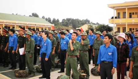 | Các đoàn viên, thanh niên tập kết tại Trung đoàn Bộ binh 95. |