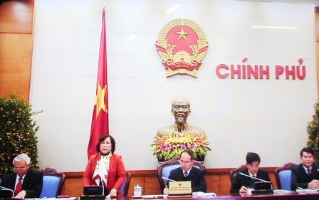 | Bộ trưởng Bộ Lao động - Thương binh và Xã hội Phạm Thị Hải Chuyền báo cáo tóm tắt kết quả triển khai thực hiện Đề án |