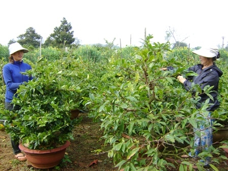 Không chỉ trồng, chăm sóc hoa mai, cây cảnh, bon sai các loại, gia đình anh Dương Danh Bộ ở thôn 11, xã Hòa Thắng còn trồng hơn 1 sào quất cảnh phục vụ Tết. Nhờ thời tiết thuận lợi nên vườn quất cảnh của gia đình anh phát triển tốt, cây cho quả sai, hoa đẹp. Nếu năm nay không có rét đậm, rét hại kéo dài, hoa, cây cảnh sẽ không bị ảnh hưởng nhiều như Tết năm 2010. Tuy thời tiết rét muộn hơn mọi năm, buốt về đêm và sáng sớm, song gia đình anh và các hộ trồng hoa trên địa bàn xã đã chủ động khắc phục bằng cách tuốt lá muộn hơn năm trước. Sau nhiều ngày tất bật chăm sóc, tạo tán, tưới nước, bón phân đầy đủ đến nay cây quất đã ra hoa, đậu quả đạt tiêu chuẩn.