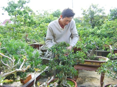 | Gia đình ông Hồ Sỹ Hùng chuẩn bị hơn 1.500 cây cảnh các loại phục vụ Tết |