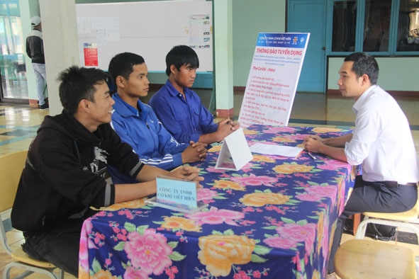 Không dừng lại ở đó, từ năm học 2014-2015 nhà trường tiến thêm một bước là đào tạo theo địa chỉ thông qua việc ký kết biên bản ghi nhớ phối hợp, hỗ trợ đào tạo, tuyển dụng HS, SV tốt nghiệp cao đẳng nghề, trung cấp nghề. Chưa vội bàn có bao nhiêu học sinh trung cấp chính quy khóa 37B của Trường Cao đẳng Nghề Dak Lak tìm được việc làm và có bao nhiêu bản ghi nhớ được ký kết trong ngày hội việc làm này, nhưng chắc chắn rằng nhận thức của HS, SV sẽ thay đổi bởi được trải nghiệm qua phỏng vấn, tư vấn trực tiếp của DN. Các em biết được ngoài kiến thức, kỹ năng nghề, doanh nghiệp tuyển dụng còn cần những kỹ năng mềm khác. Điều này có thể trong quá trình học các em đã được các thầy, cô giáo truyền đạt nhưng chưa có cơ hội trải nghiệm và khi đã được trải nghiệm, thực tế qua thời gian thử việc thì ít ra cũng đã mất đi một cơ hội có được việc làm hoặc ít nhất là phí phạm một thời gian không ngắn. Ông Đỗ Văn Thành, Phó giám đốc Công ty TNHH Cơ khí Viết Hiền cho biết: “Lâu nay, đơn vị tuyển dụng lao động qua các kênh thông tin truyền thông, trung tâm giới thiệu việc làm, dán hoặc phát tờ rơi. Đây là lần đầu tiên đơn vị tham gia tuyển dụng lao động trực tiếp. Ưu điểm lớn nhất của hình thức tuyển dụng lần này là tuyển chọn lao động đúng ngành nghề cần tuyển, vì vậy đỡ mất thời gian, mặt khác sẽ sòng phẳng hơn”. Ông Hiền phân tích: “Sòng phẳng ở đây là gặp gỡ lao động, trao đổi, thỏa thuận cụ thể về các điều kiện như lương, thời gian thử việc. Nếu không đi đến thống nhất sẽ không bị ràng buộc gì, bản thân DN không cảm thấy áy náy với người lao động”. Riêng bản ghi nhớ phối hợp, hỗ trợ trong đào tạo, tuyển dụng mà nhà trường đề xuất sẽ được xem xét bởi nhu cầu sử dụng lao động mỗi năm một khác.
