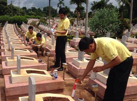 Việc làm của cán bộ, nhân viên Chi nhánh nhẹ nhàng lau từng vết bụi bẩn, dán keo cố định từng bình hoa, cắm từng cành hoa lên phần mộ… thực sự ý nghĩa, thay lời tri ân sâu sắc của những người được sống trong khung cảnh hòa bình, hạnh phúc luôn nghĩ tới các Anh hùng Liệt sỹ.