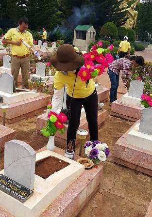 | Các phần mộ sau khi đã được lau dọn và cắm hoa. |