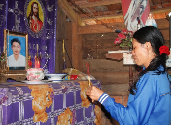 | Cán bộ mặt trận thị trấn Krông Kmar đến thăm ngôi nhà mới của gia đình bà Phan Thị Được |