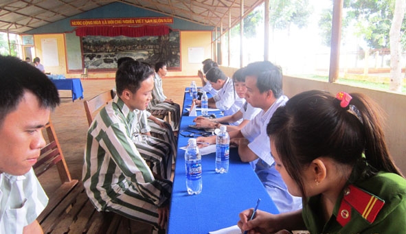 | Đoàn Cơ sở Trại Giam Đắk Trung phối hợp với Hội LHTN Việt Nam tỉnh Đắk Lắk khám bệnh cho phạm nhân. |