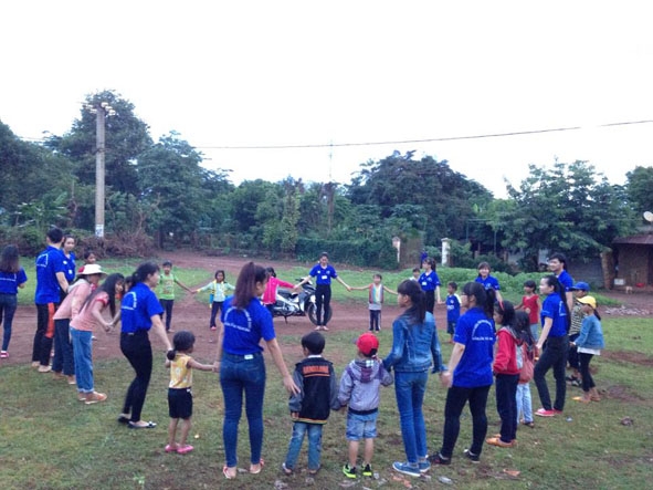 | TNTN tổ chức sinh hoạt với các em trước buổi chiếu phim. |