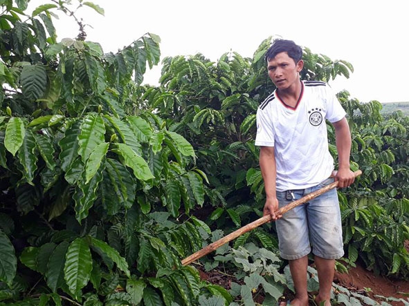 | Anh Y Ngoắt Niê chăm sóc rẫy cà phê của gia đình. |