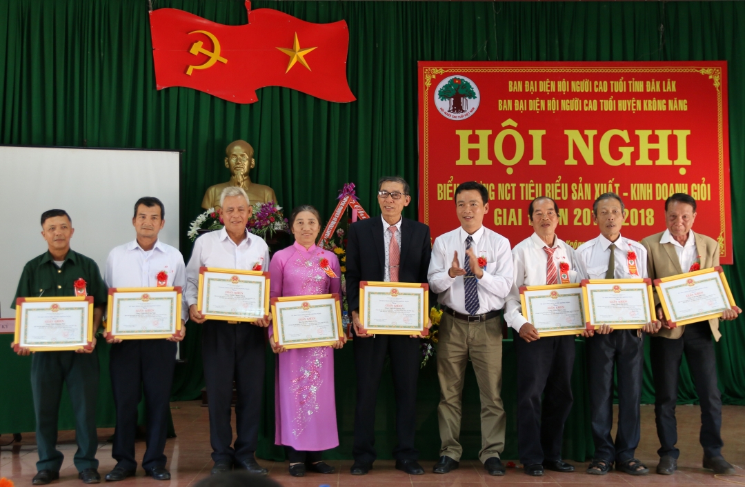 | Những tấm gương người cao tuổi sản xuất kinh doanh giỏi giai đoạn 2013-2018 được UBND huyện Krông Năng tuyên dương, khen thưởng. |