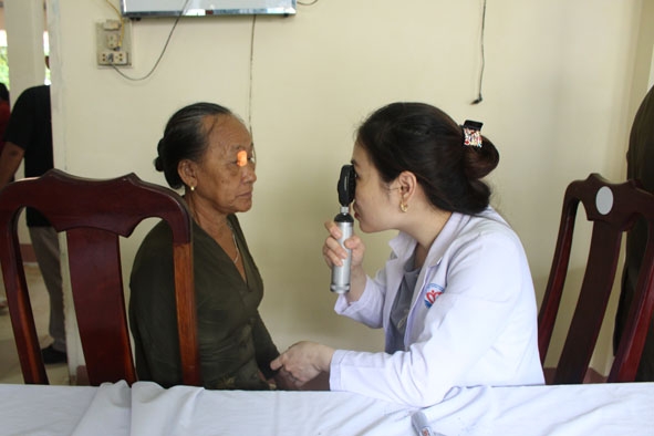| Các bác sĩ khám mắt miễn phí cho người dân huyện Ea Súp. |