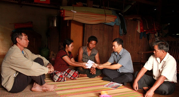 | Cán bộ Mặt trận Tổ quốc xã Ea Tu thăm hỏi, hỗ trợ cho một gia đình có hoàn cảnh khó khăn đột xuất ở buôn Ea Nao A. |