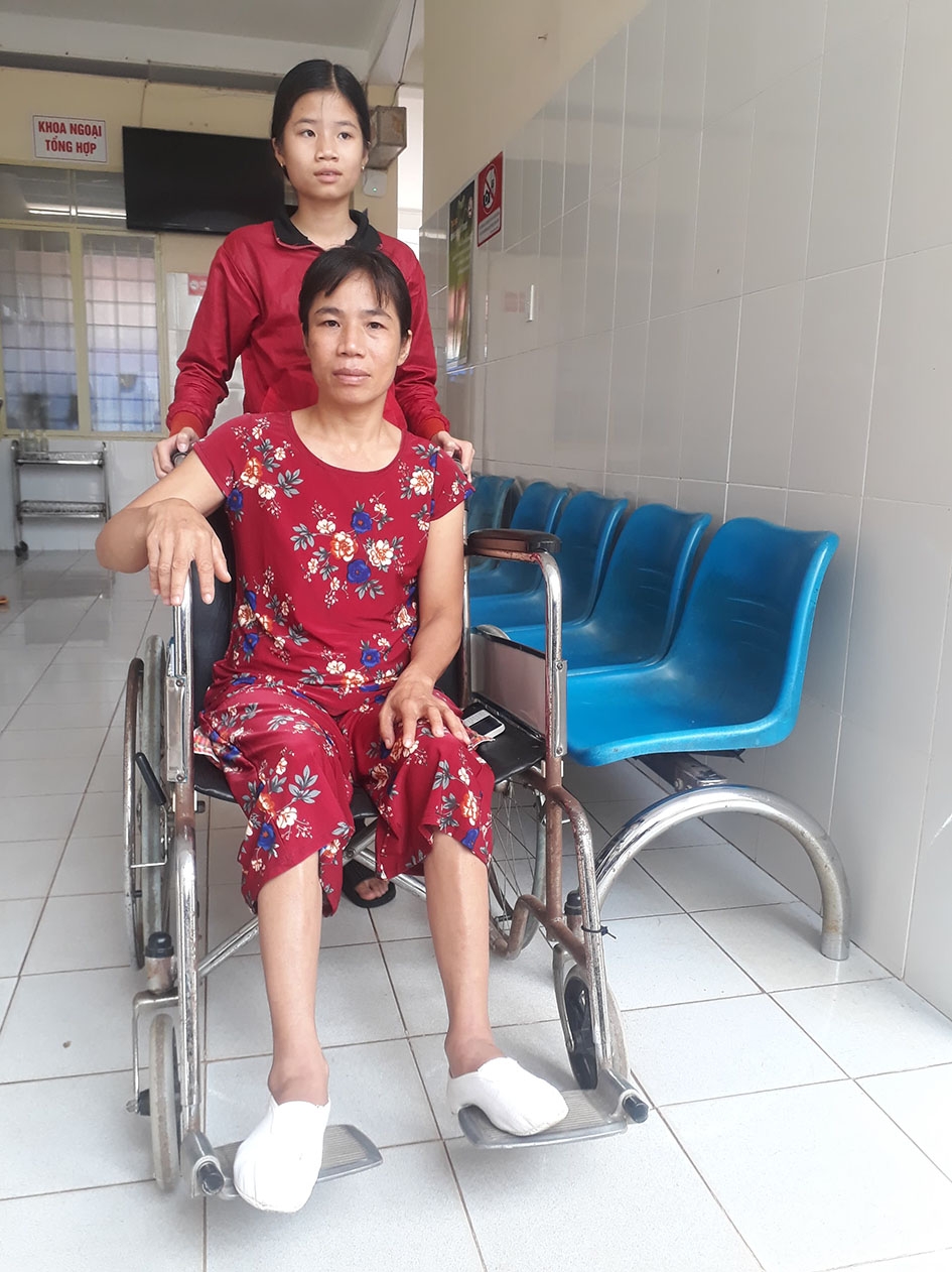 “Họa vô đơn chí”, tháng 7-2018, chị Hồng bị tai nạn khi đang phụ hồ dẫn đến gẫy ba đốt xương sống lưng liệt hai chân, suy ngược thần kinh lâm chứng (nhiễm khuẩn tiết niệu không xác định vị trí). Gần 5 tháng nay, chị Hồng phải ngồi xe lăn, chữa trị tại Bệnh viện Y học cổ truyền tỉnh và không biết khi nào mới hồi phục sức khỏe để tiếp tục lao động kiếm sống.
