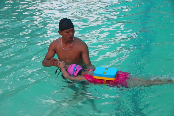 | Trẻ em ở buôn Ja (xã Hòa Sơn) được hướng dẫn cách rửa tay đúng cách... |