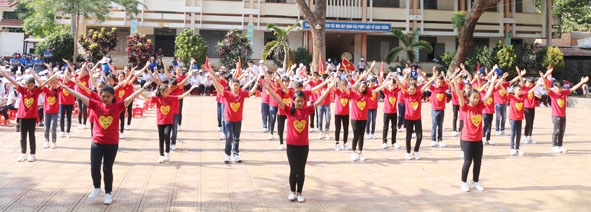 | Thiếu nhi tham gia nhảy dân vũ trong Ngày hội "Thiếu nhi vui khỏe - Tiến bước lên Đoàn" cấp tỉnh năm học 2018-2019. |