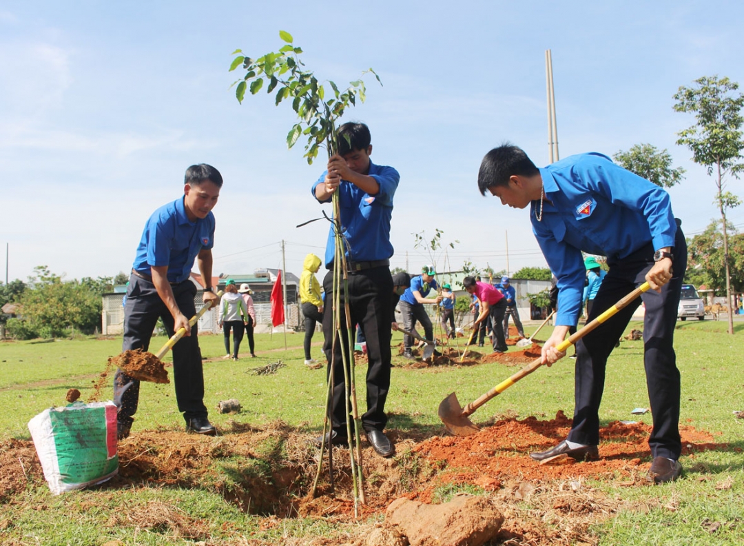 | Đoàn viên thanh niên tham gia trồng cây tại thị trấn Liên Sơn, huyện Lắk trong Chiến dịch TNTN hè 2019. |