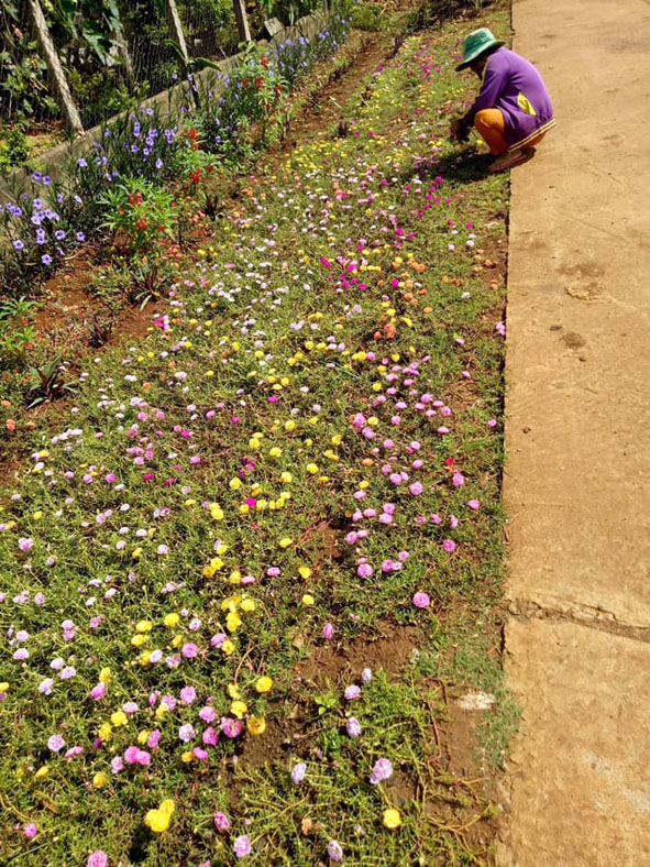 | Hội viên phụ nữ xã Ea Drông tham gia trồng cây, làm đẹp buôn làng. |