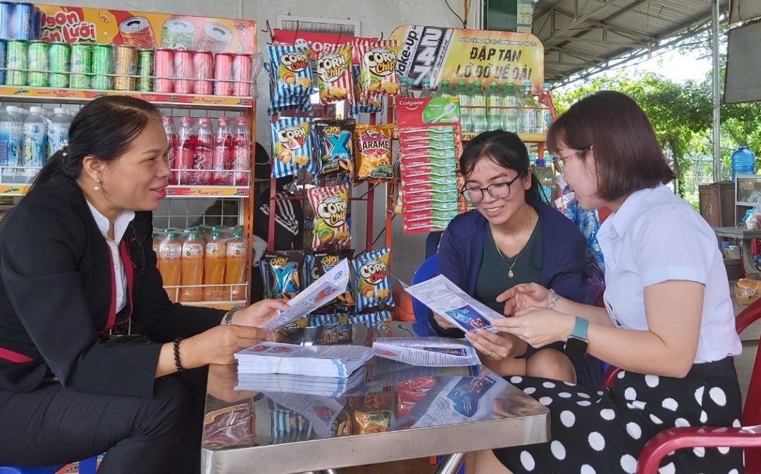 | Cán bộ BHXH huyện Lắk tuyên truyền về lợi ích của BHXH, BHYT đến người dân trên địa bàn. |
