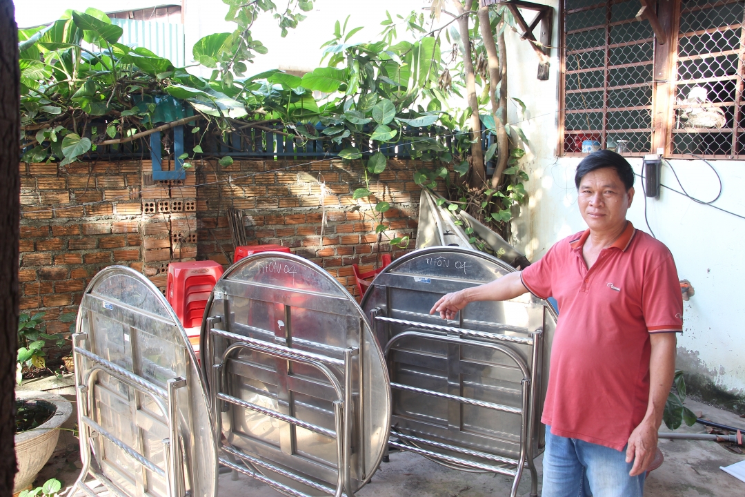 | Không có nhà văn hóa cộng đồng nên giấy khen, bàn ghế… của thôn 4 đều tập trung để tại nhà Trưởng thôn 4 Bùi Công Trình. |